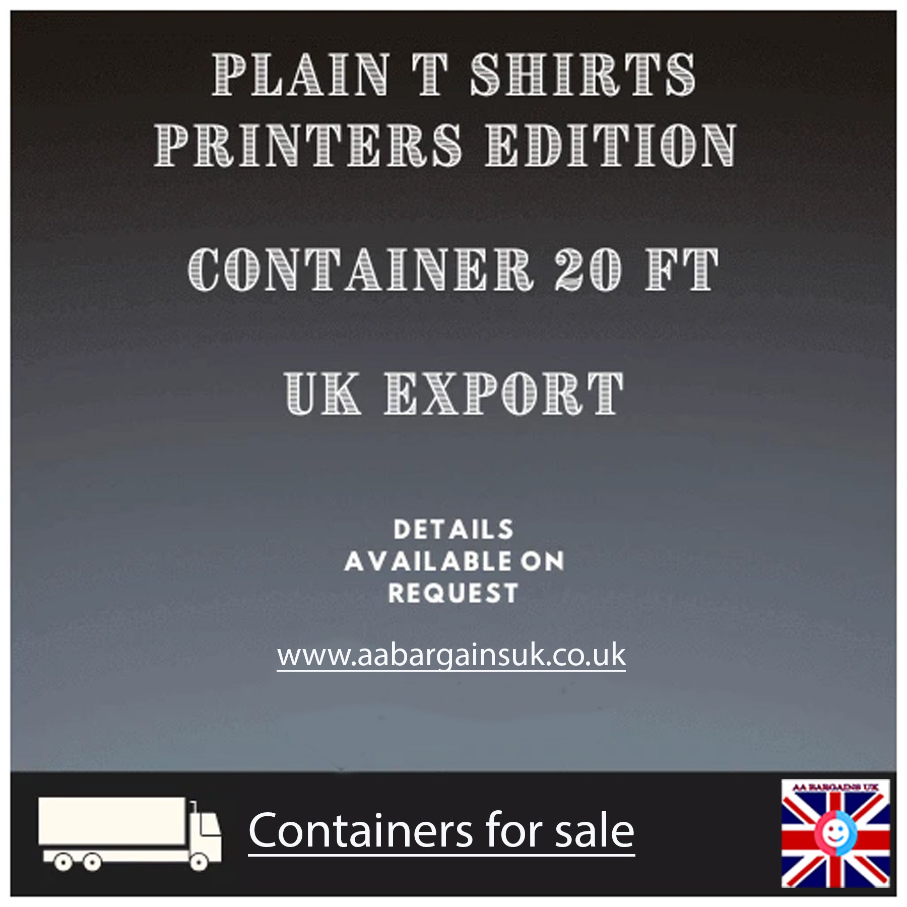 21,000 items per 20ft container of plain unisex T-shirts, supplied as liquidation bulk stock. Perfect for printers, resellers, and custom branding, this lot includes men’s and women’s sizes from S to XXL in 6 assorted colours. A fantastic value deal at just £1.28 per piece.